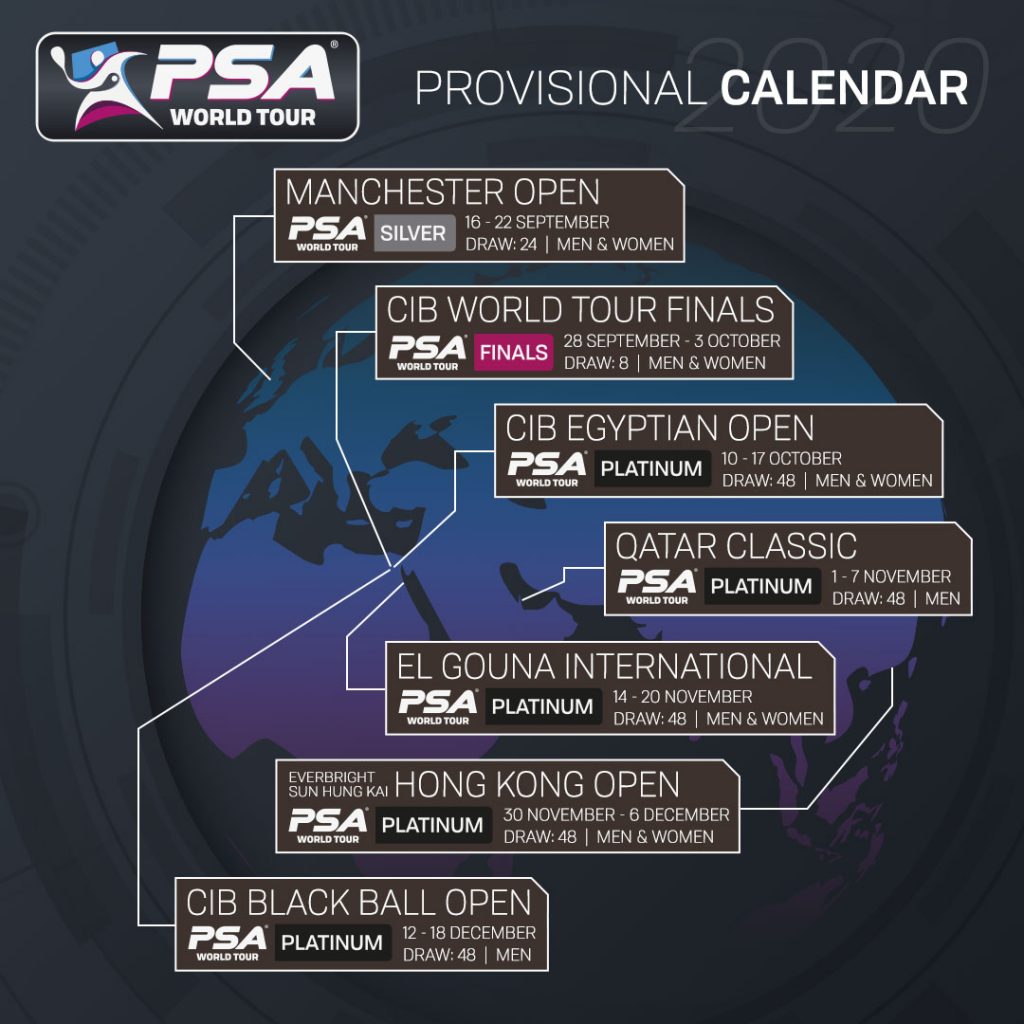PSA World Tour Provisional Schedule: September 2020 – December 2020
