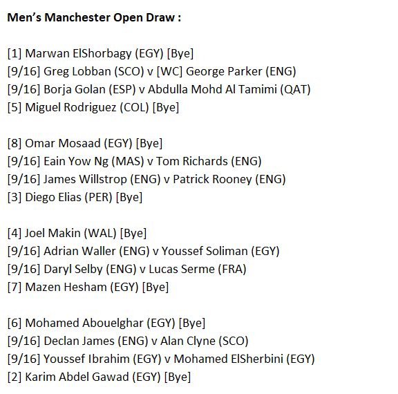 Marwan, along with the other top eight seeds, receives a bye into the second round where he will face either England’s George Parker or Scotland’s Greg Lobban as he looks to follow in older brother, Mohamed’s, footsteps by getting his hands on the title.