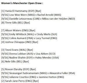 The draws for the men’s and women’s Manchester Open, PSA World Tour Silver tournament, have been released with the tournament set to take place at Manchester’s National Squash Centre from 9th to 13th August.