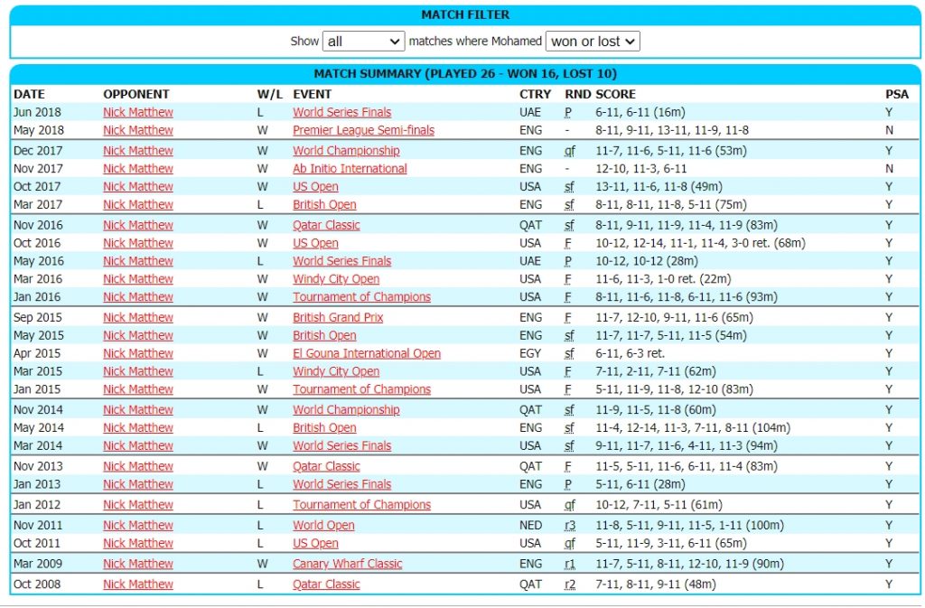 “But I always enjoyed our matches as there was always so much happening in them from changes of pace, attacking certain areas, the flight of the ball, mental aspects, the lot, so from that generation Nick Matthew was the one I learned the most from.