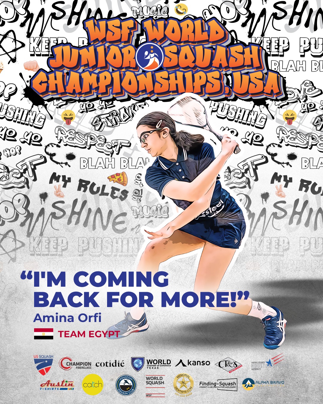 Amina Orfi has become the first ever player to win a hat-trick of WSF World Junior Squash Championship titles after a comprehensive win over Egyptian compatriot Fayrouz Aboelkheir in Houston Squash Club, USA.